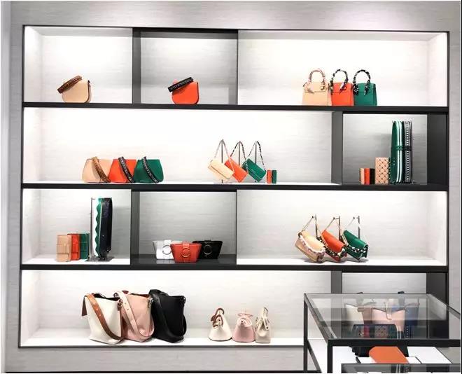 鞋包类整体墙面的SKU要在视觉上比服饰类更加需要均匀,除了“间接过渡色系类”陈列方式,绝对大多数鞋包品牌没有在视觉上有较大明显色块的区分,便于整体店铺的统一性。
