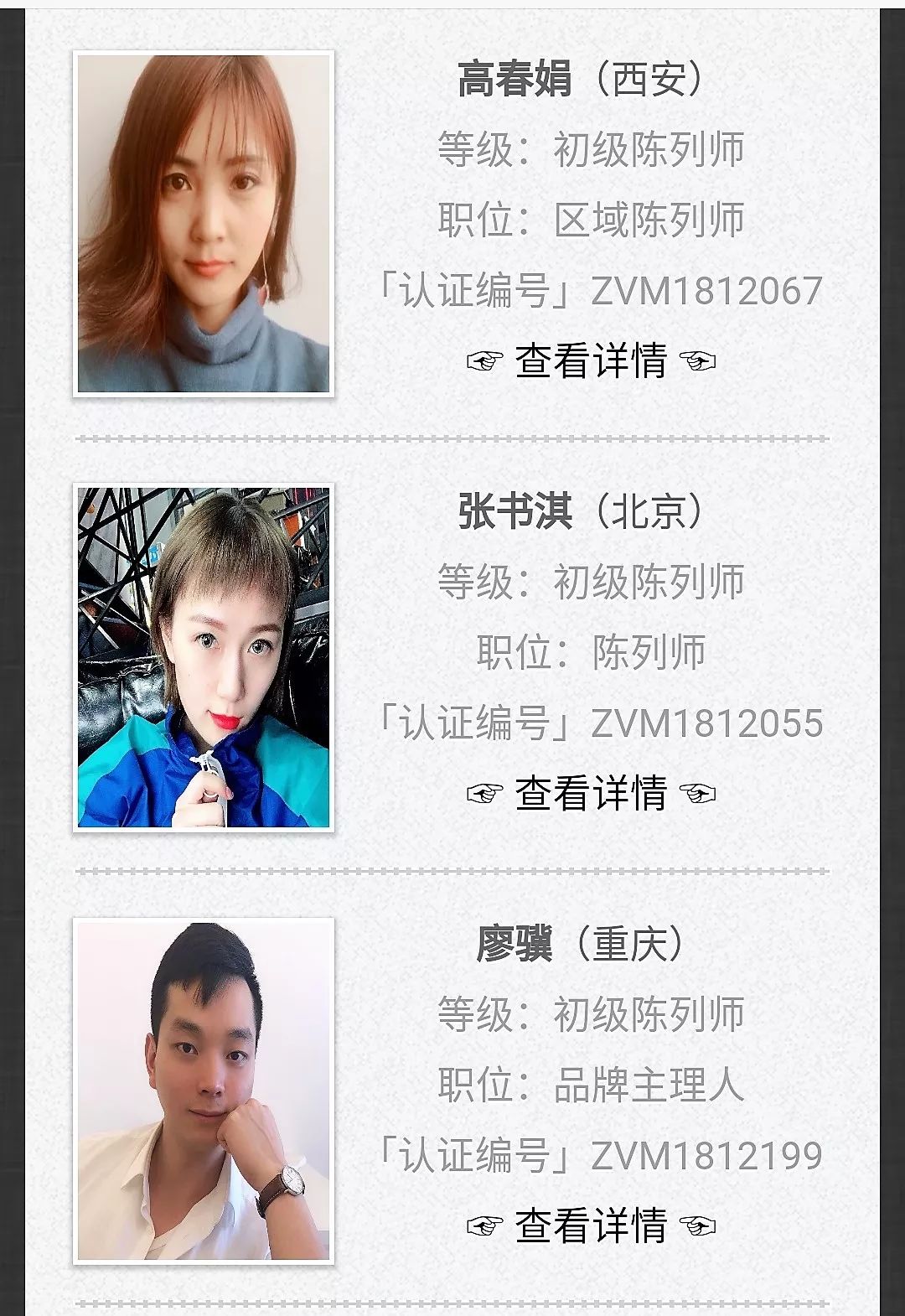 斑马的陈列师证书主流品牌都很认可,但只有证书还不足以体现专业性与权威性,认证陈列师库(系统)才是最好的证明。
