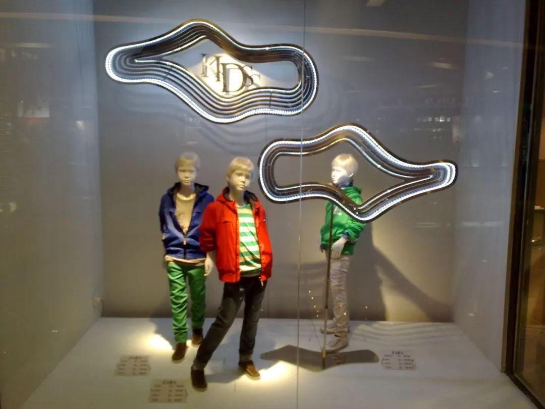 童装店铺的橱窗是在消费者逛街时最先看到的,因此橱窗设计斗法是吸引消费者的第一法则!童装橱窗中无论再花哨,经常都会出现产品和模特,因此搭配无处不在!除此之外,橱窗的趣味性直接导致孩子是否喜欢这个店铺,家长是否愿意开启对品牌的信赖。