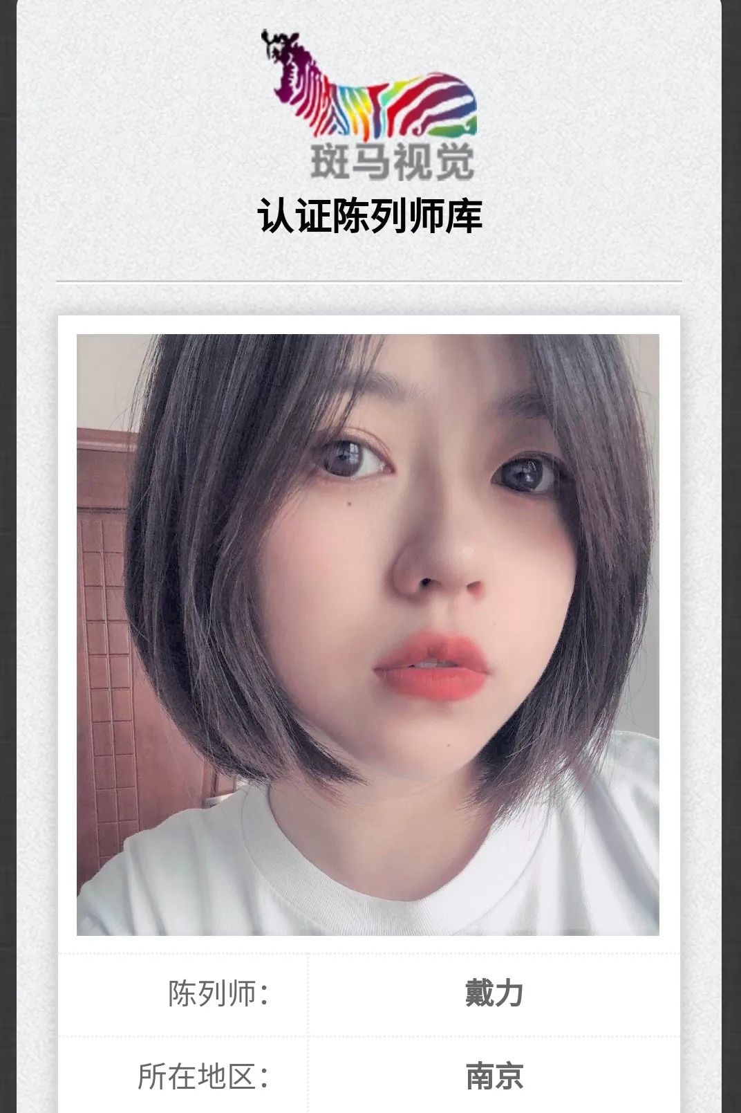 斑马9月陈列班所有毕业生资料已注册进认证陈列师系统,专业正规,方便推荐工作和认证查询,进入斑马认证陈列师系统即可查询全国陈列师资源!