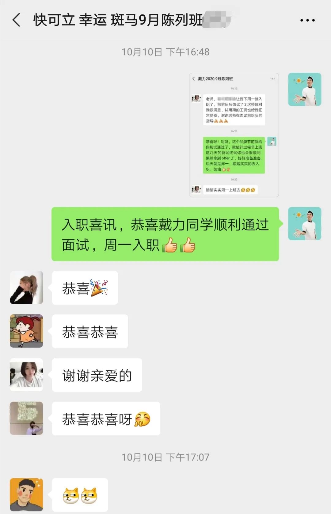 刚进入10月就有好几位同学陆续入职,国庆假期过完就各种喜讯传来,戴力,永俊,倩姿等同学都已经入职了,从小白成为了陈列师,实现了自己的梦想,更多同学的面试也都顺利的进入了复试和实操面试阶段,喜讯正在路上。