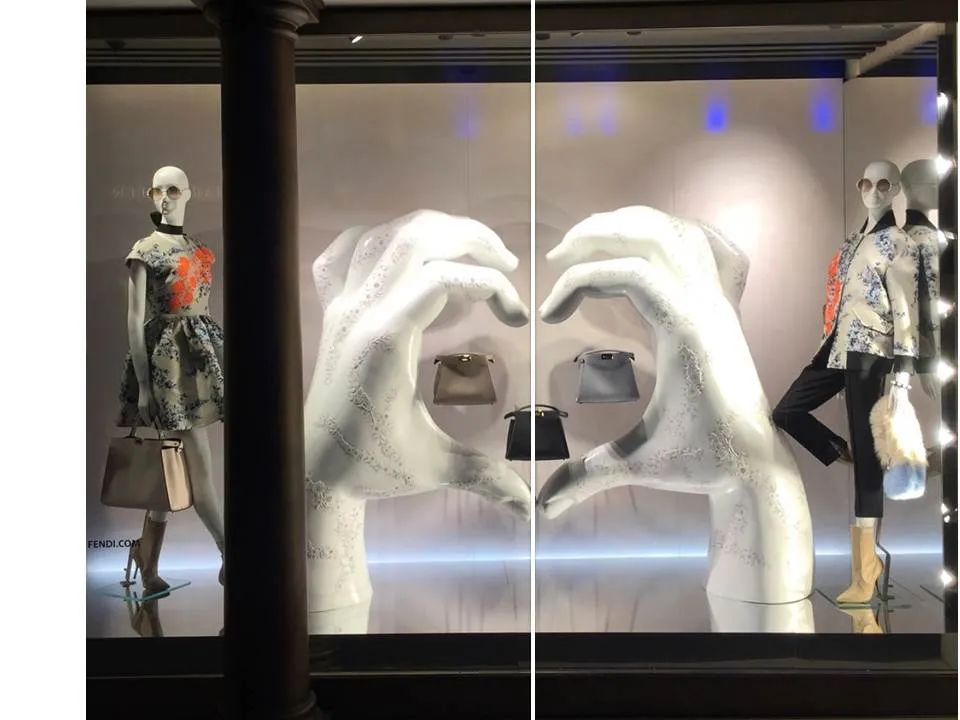 更创意飞扬的品牌会利用三个模特打造极具故事感的陈列,好像时间静止在那一刻,有的品牌辅助大量场景道具,有的则利用抢眼的服饰搭配,难以想象,三个模特可以呈现如此多的内容!
